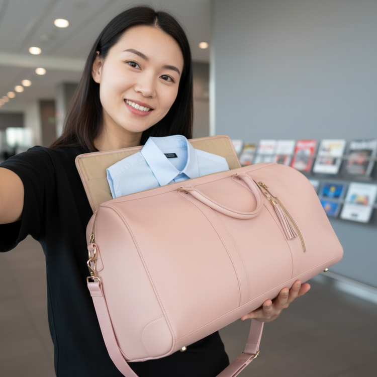 Unfold versatility wherever you go. Our water-resistant PU leather duffle is foldable, spacious, and ready for your next journey.